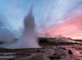 Dancing into the sunset at Geysir and Strokkur